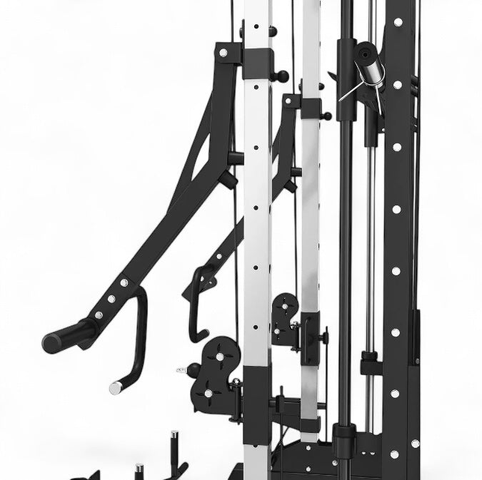 Smith Machine for Safe Max Load Challenge yourself with confidence. The Smith Machine's safety features, including guide rails and multiple locking points, ensure controlled, linear movements. You can push your limits without the need for a spotter.