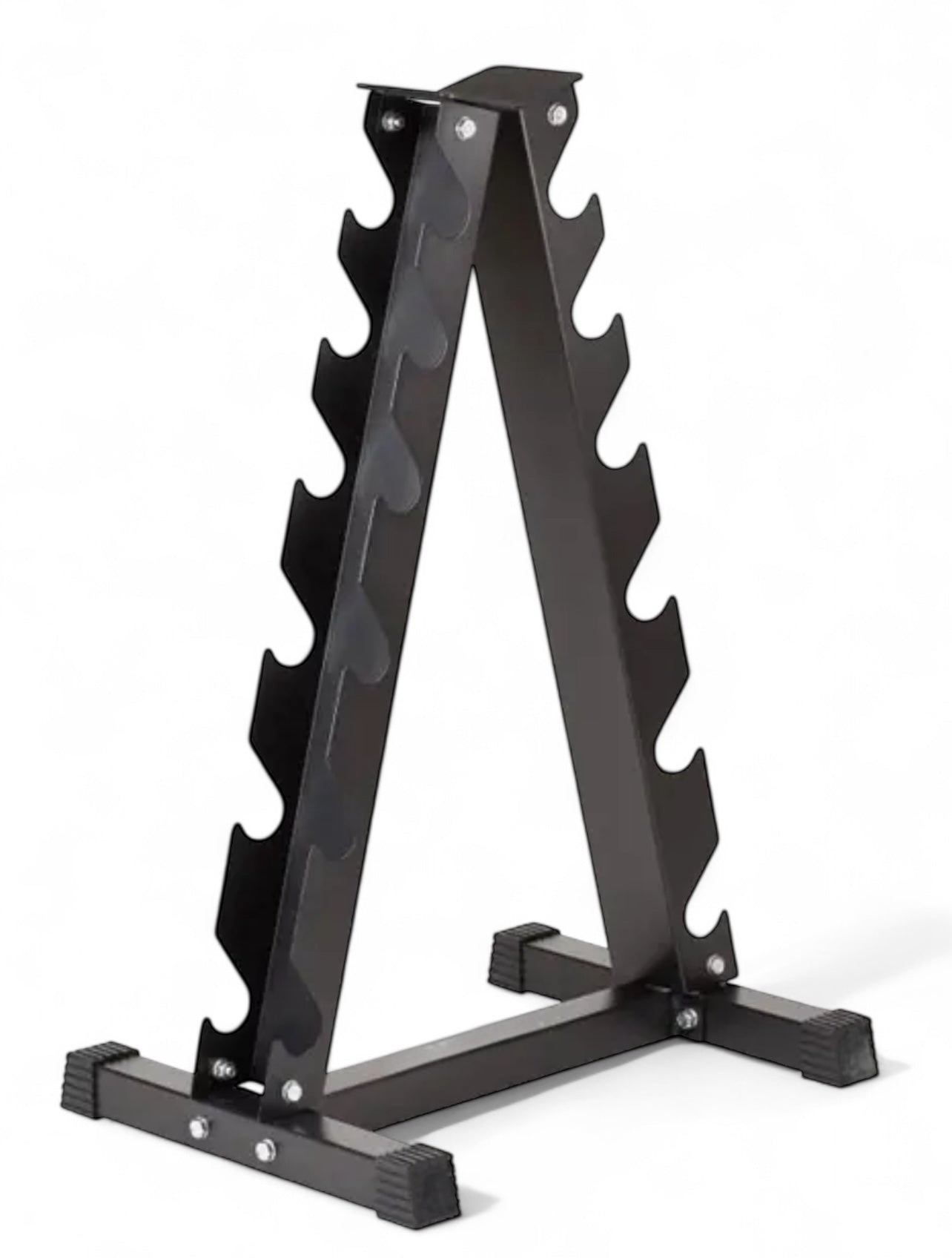 Dumbbell Tree Rack: Keep your gym organized and professional-looking with the Rock Solid dumbbell tree rack. Its vertical design saves space and can accommodate up to 6 pairs of dumbbells. Crafted from heavy-duty, powder-coated steel, each step has a slightly larger gap, allowing weights to be stacked incrementally for a tidy and convenient storage solution.