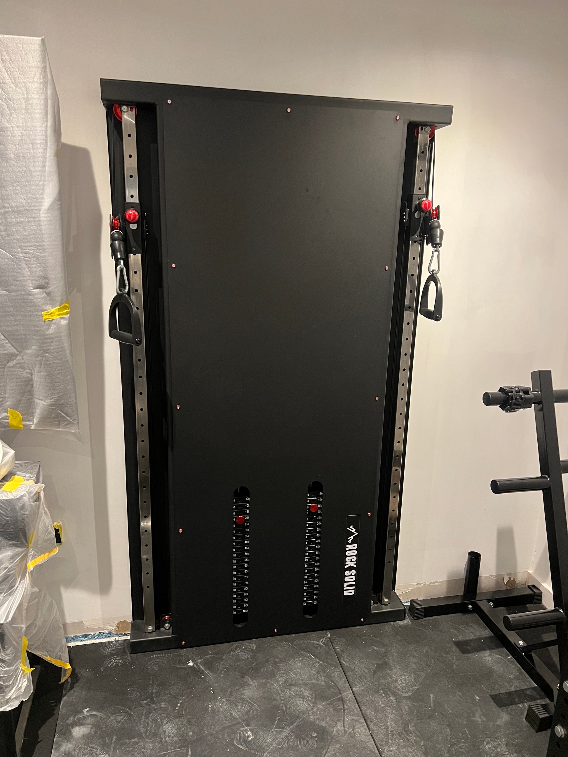 Experience compact innovation with the Rock Solid Slimline adjustable dual cable pulley machine. Redefining space-saving design, this machine protrudes just 19cm from the wall, making it the sleekest and most efficient dual cable pulley on the market.